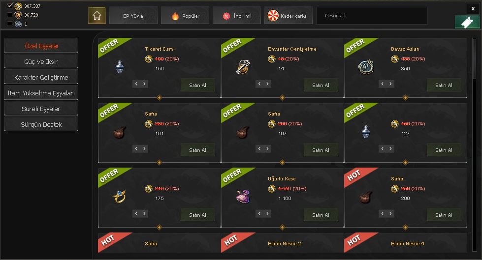 Kategorilendirilmemiş sistemler (sadece bir kaç sistem görseli bulunmaktadır, oyun içerisinde bunlara ek +100 ayar ve eklenti bulunmaktadır.)