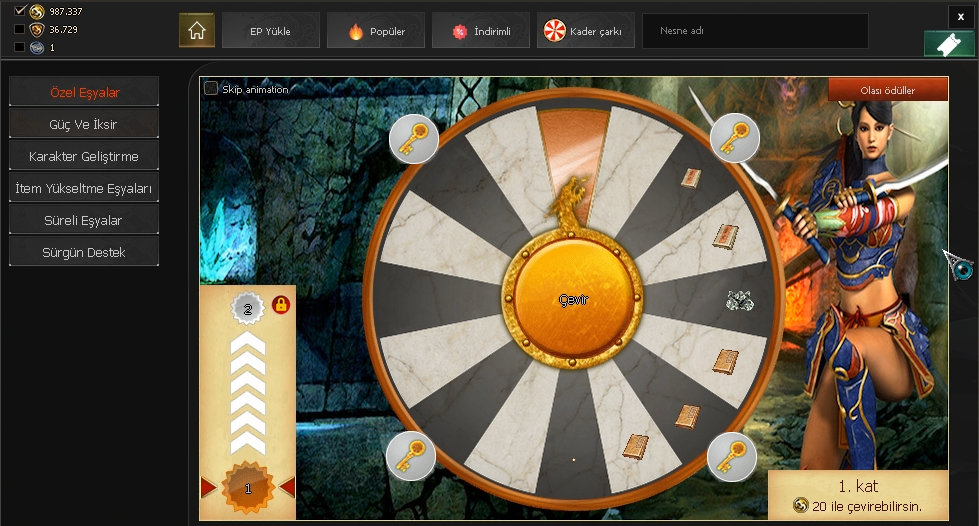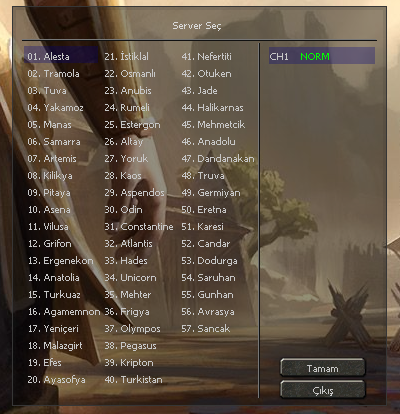 Karakter seçim ekranı