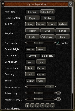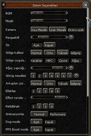 Sistem & Oyun seçenekleri